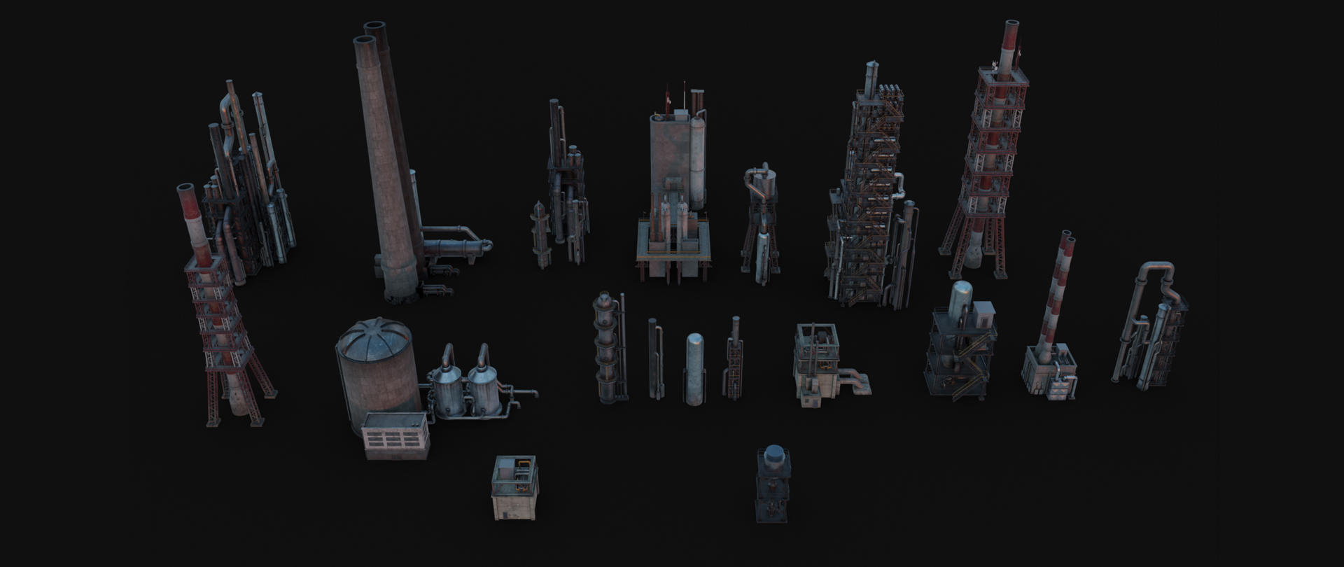 Elevate your creative projects to an industrial masterpiece with Greeble Town's Industrial Pack. Lightweight and easy to integrate, they allow you to effortlessly scatter and greeble your scenes, bringing heavy industrial worlds to life. From intricate pipes and towering tanks to sprawling distillation units and powerful plants, our assets offer limitless possibilities. Immerse your audience in the gritty, industrial beauty of your creations and redefine what's possible. Let the industrial revolution of your imagination begin!